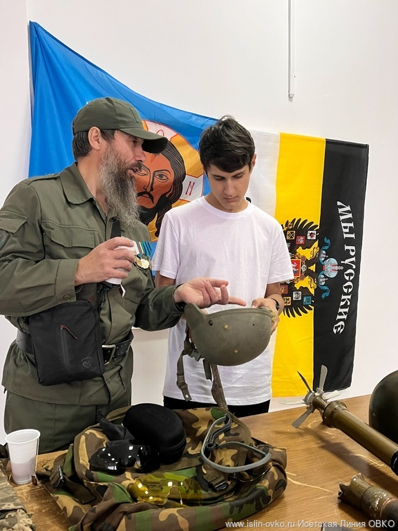 Казаки хутора Архангельский ведут активную работу по патриотическому воспитанию молодежи. Проводят уроки мужества, круглые столы, встречи. В этот раз наши казаки встретились со студентами УГЛТУ. Сергей Алмазов рассказал студентам о том, как проходит служба солдат на передовой, обратил внимание на быт и главные опасности. Виталий Конышев рассказал о Патриотизме. О важности служения Родине, верности Отечеству. Особое внимание заострил на особенности исторического пути нашей страны. Также была организована выставка охолощенного оружия и экипировки, которые были привезены из зоны боевых действий. Студенты с большим внимание слушали казаков, интересовались выставкой